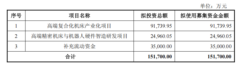 拟使用募资金额达9.17亿元的高端复合化机床产业化项目是本次募资的重点。