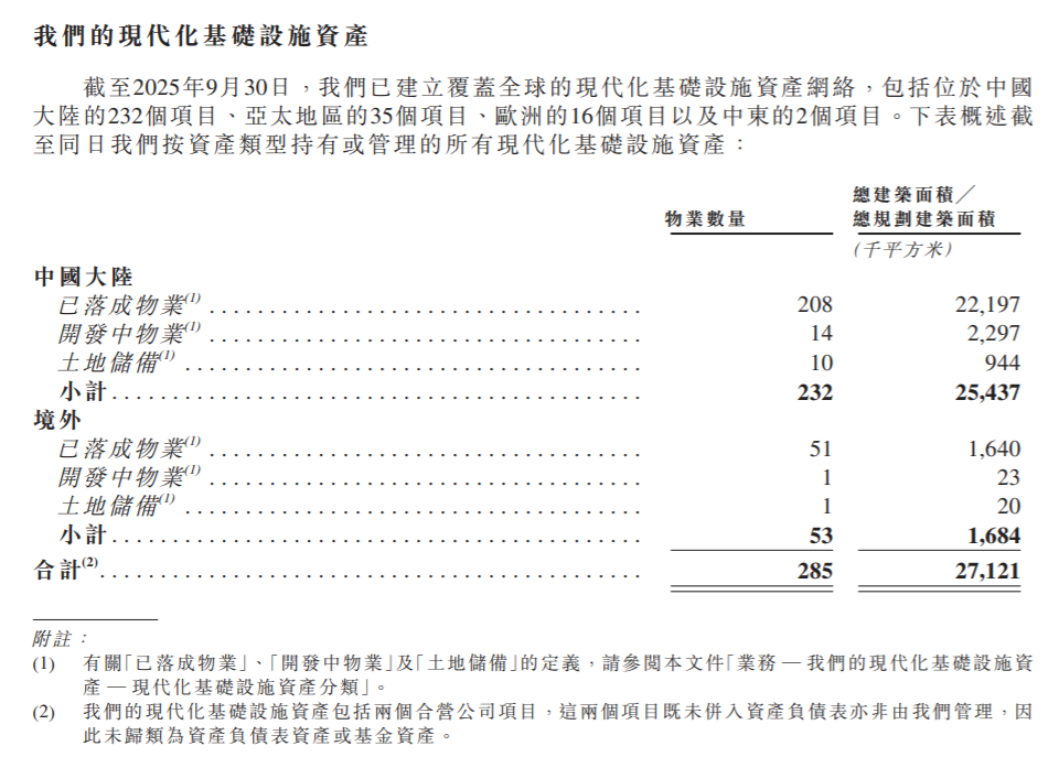 截至2025年9月30日,京东产发开发、持有或管理的,包括259个物流园、20个产业园以及6个数据中心基础设施。