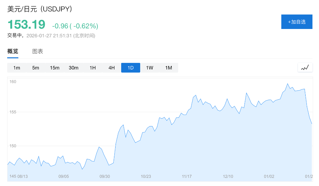 此前日元汇率持续走弱,一度逼近1美元兑160日元的关键心理关口。高市早苗政府宣布拟冻结食品消费税两年,这一财政承诺引发市场对其债务可持续性的担忧。日元汇率与日本国债市场的波动相互交织,使即将面临大选的现任政府承受着维护市场信心的双重考验。