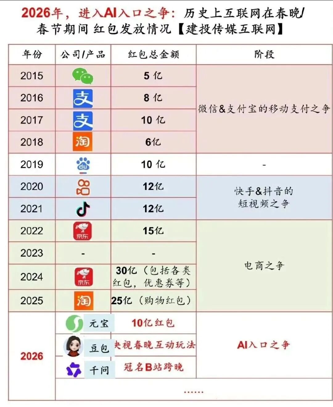 从巅峰时期的180亿元,到如今的34亿元,春晚红包总额的大幅缩水,不仅标志着“撒钱营销”的式微,更印证了互联网行业的深刻转型,粗暴烧钱换流量的时代已然落幕,用户不再为小额红包买单,平台也终将告别“亏本换量”的非理性竞争。