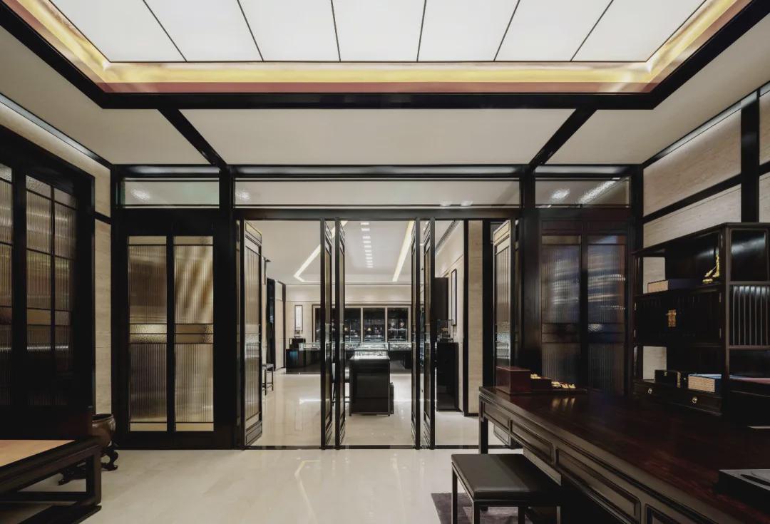 老铺黄金门店用文房、书房和茶室场景做情景化内部装饰