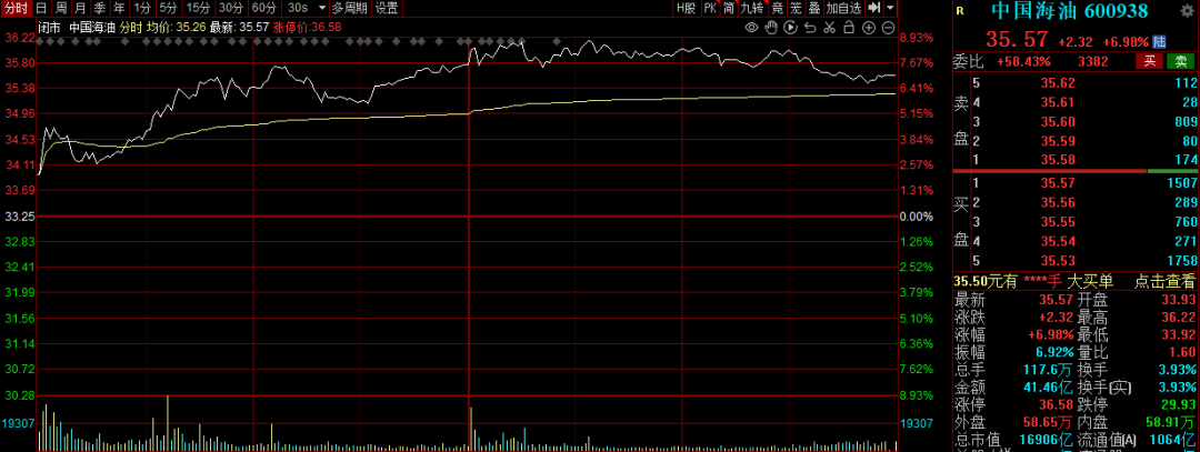 另外,国际油价创阶段新高,中国海油盘中一度涨超8%,中国石油上涨超过3%。
