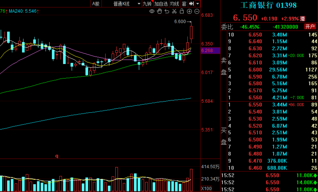 与此形成鲜明对比的是港股红利板块表现。工商银行H股本月创出历史新高,2026年开年以来涨幅达到3.97%。中国平安等近期也呈现明显H股强于A股的特征。