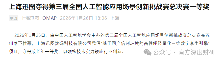 比较神奇的是,同天上海迅图官方公众号也发布了夺得第三届全国人工智能应用场景创新挑战赛总决赛一等奖的信息,虽然没提及国产GPU到底是谁。但在1月14日,其官方公众号发布确定迅图QMAP与砺算科技实现产品互认证的信息。