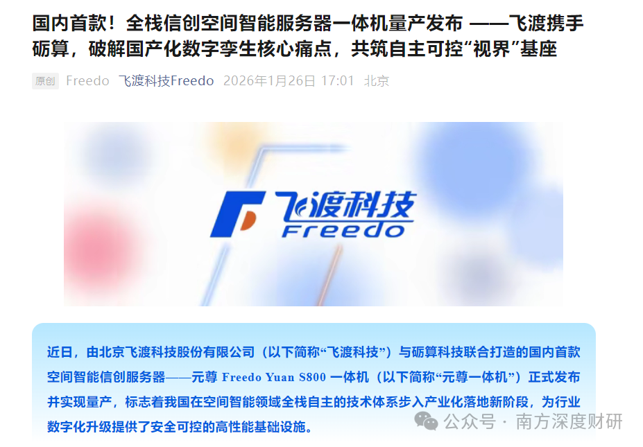 盘后,与 砺算科技合作的飞渡科技 更是在官方公众号肯定了 与砺算科技联合打造的 国内首款 空间智能信创服务器—— 元尊一体机 的综合性能已达到搭载英伟达 RTX A5000显卡服务器的水准。
