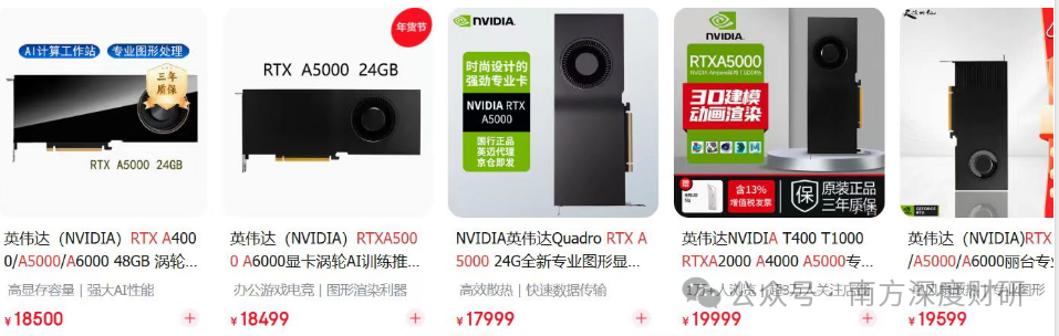 而 英伟达这款 A5000官方售价高达2万人民币左右。不过这款显卡定位是 面向工作站/专业市场的中高端专业显卡,非消费级主流型号,出货量远低于GeForce游戏卡,以企业批量采购为主,零售占比低 。
