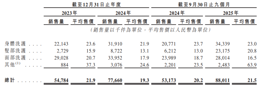 身体洗护系列,平均售价在22-24元之间;