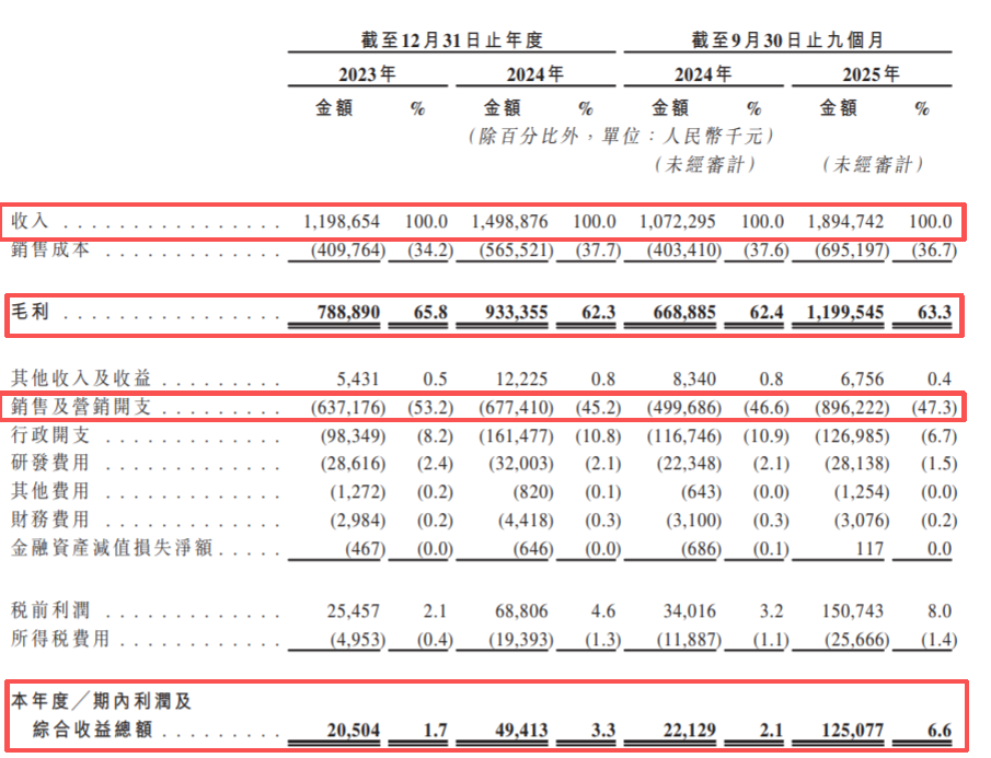 财报显示,2023年、2024年、2025年前9个月,半亩花田分别实现营收11.99亿、14.99亿和18.94亿。