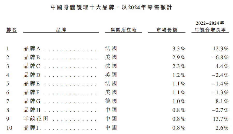 以及身体护理第九大品牌。
