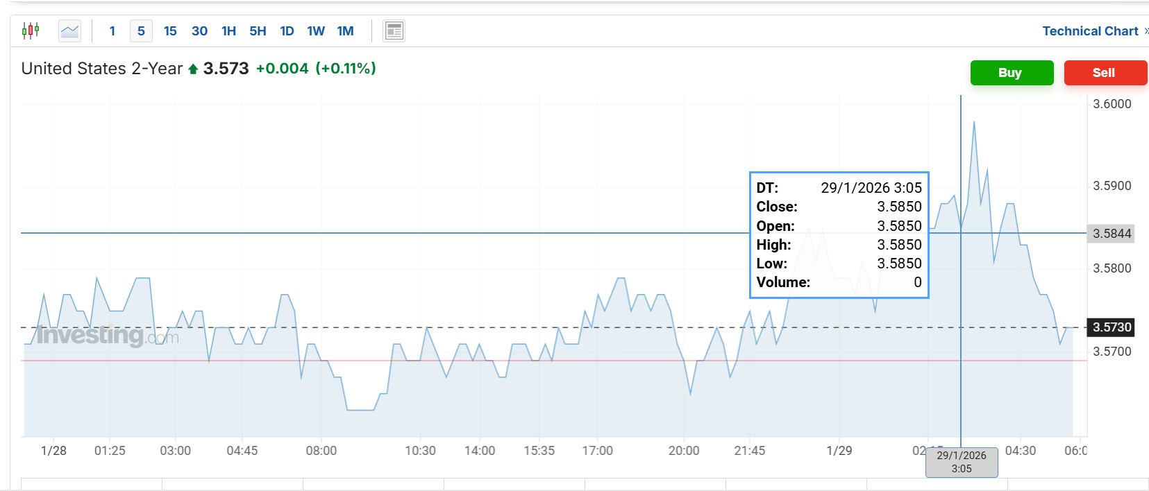 下图为2年期美债收益率: