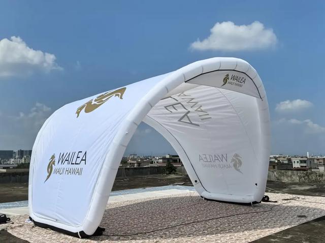 高源买回市场上的同类产品,让老师傅们一个个剪开、拆解,通过逆向工程还原结构。在解决了基本结构问题后,他又开始琢磨着创新。通过分析后台询盘数据,他敏锐地捕捉到了客户的潜在需求,针对夏季高温场景,在气膜中增加喷水降温系统;考虑到夜间使用需求,又在拱门的位置增加了LED灯带。