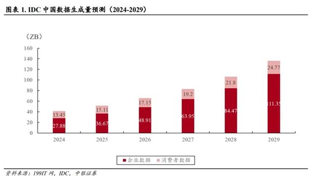 其中,2025年全球数据生成量预计为213.56ZB,到2029年将翻倍增长至527.47ZB。中国2025年数据生成量约为51.78ZB,到2029年或将增至136.12ZB,复合年增长率高达26.9%。