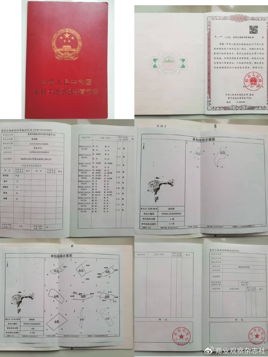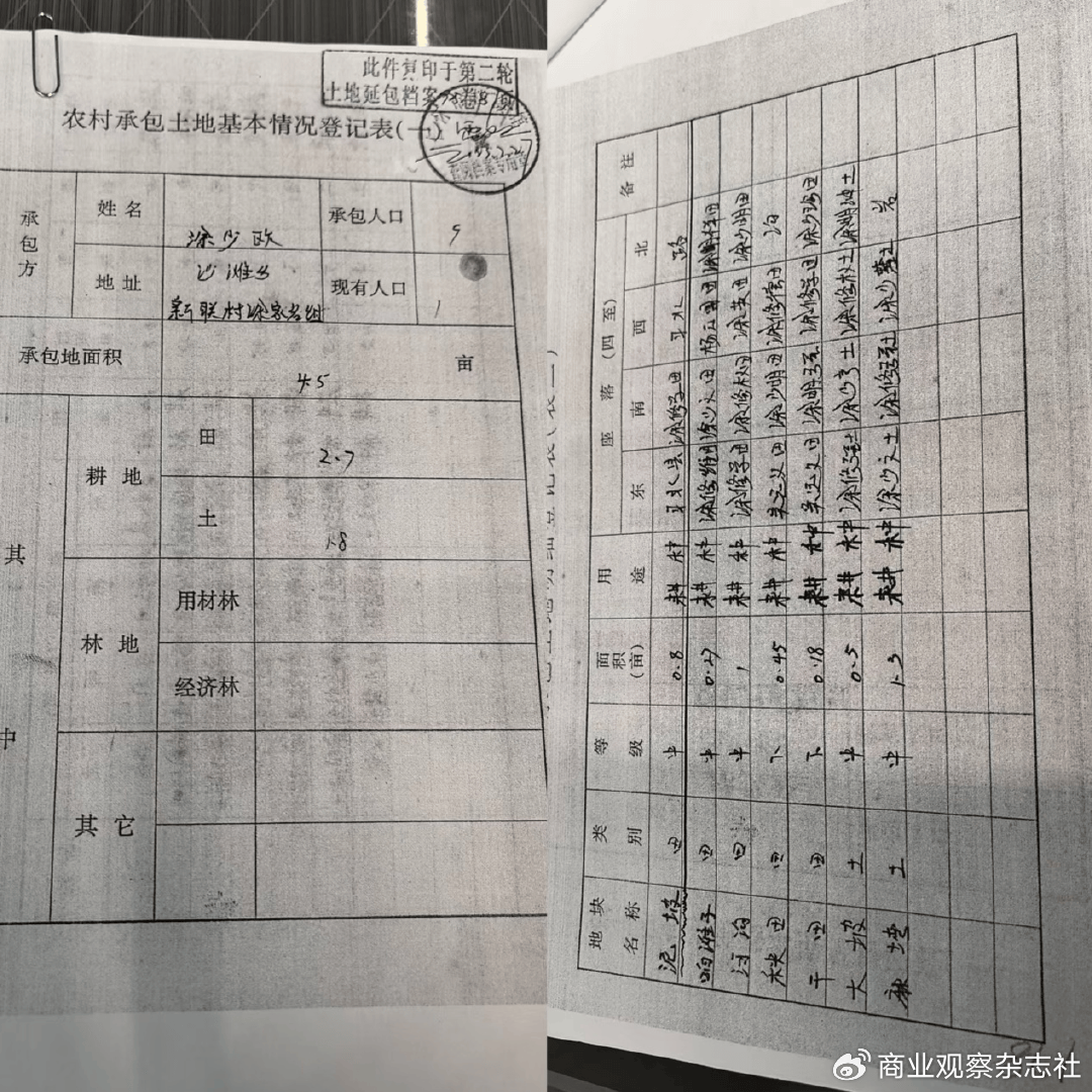 涂绍欧向记者出示了一系列铁证:盖有仁怀市档案馆查阅专用章的《农村承包土地基本情况登记表》显示为4.5亩、实地测量勘测图,以及盖有仁怀市人民政府公章的《农村土地承包经营权证》。证件显示其名下11宗地块总面积9.6亩,性质为“基本农田”。涂绍欧强调,加上未确权的荒地,自家土地远超被核算的5.6695亩。