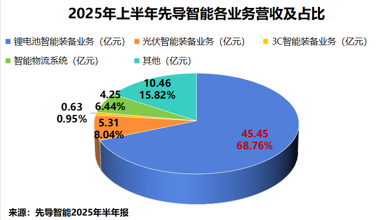 2025年上半年,公司锂电池智能装备业务实现营收45.45亿元,同比增长16.40%,占总营业收入近七成。