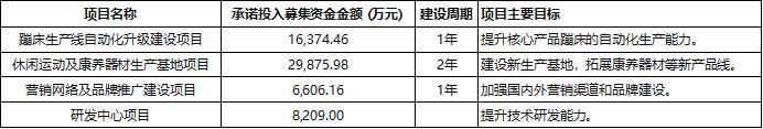 这份踩着行业红利堆砌的报表,成为三柏硕2022年10月成功登陆资本市场的核心筹码,最终募集资金净额约6.11亿元。招股书中明确规划了四大实体募投项目,旨在巩固行业地位并向康养赛道延伸,其中总投资额超7亿元的“休闲运动及康养器材生产基地项目”,被视作战略转型的关键抓手,承载着从家用健身器械向高附加值康养领域突破的野心。