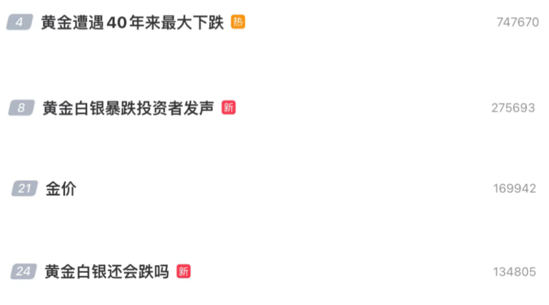 从周五开始到周末,黄金白银“崩盘”成为社交平台热门话题。