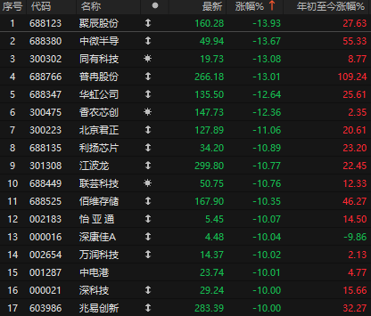 今天存储、半导体设备板块全线暴跌,兆易创新、深科技、万润科技等多股跌停。