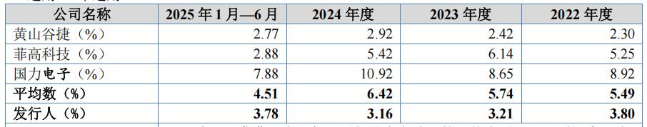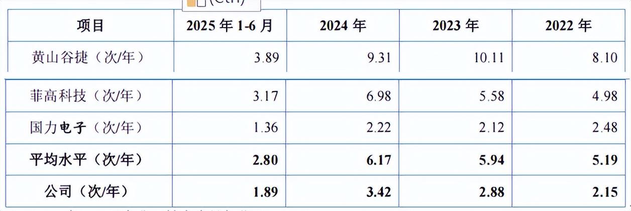 报告期内,公司存货周转率低于同行业可比公司平均水平,主要系低于菲高科技与黄山谷捷,具体原因为:公司包括陶瓷管壳及封装散热基板两类主要业务,材料及产品种类相对较多;同时,公司陶瓷管壳的工序流程亦长于黄山谷捷及菲高科技,综合使得原材料、在产品及半成品等的金额亦相对较高。