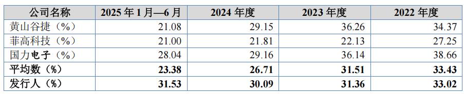 报告期内,赛英电子主营业务毛利率分别为33.02%、31.36%、30.09%和31.53%,可比公司毛利率均值分别为33.43%、31.51%、26.71%和23.38%。报告期内,公司其他业务毛利率分别为11.05%、0.56%、2.55%和1.62%,主要受边角余料及报废品的毛利率较低影响。