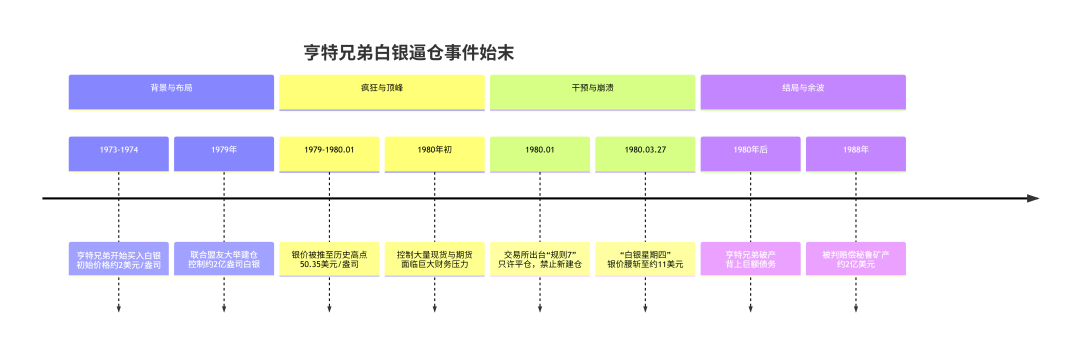 1980年初,亨特兄弟将银价推升至每盎司50美元的史前高度。然而,他们的整个帝国建立在巨大的债务杠杆之上。当交易所为抑制投机而大幅提高保证金比例,甚至出台“只许平仓”的规则时,亨特兄弟的资金链瞬间断裂。