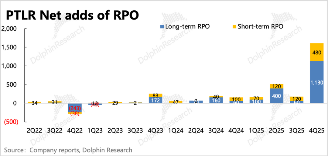 RPO表明上述剩余合同中已经明确锁单(无法取消)的金额,Q4增速飚至144%。由此说明,客户端正在加速锁定总价值更高的长期服务。