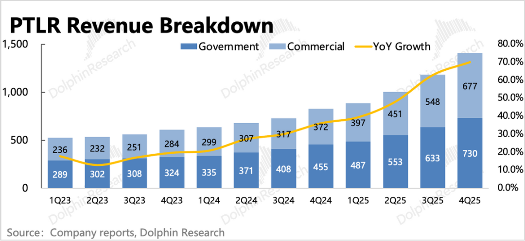 海豚君认为,Palantir本身产品偏定制化且非常深、垂,还涉及到复杂的客情关系,被AI原生应用颠覆的可能性明显不高。