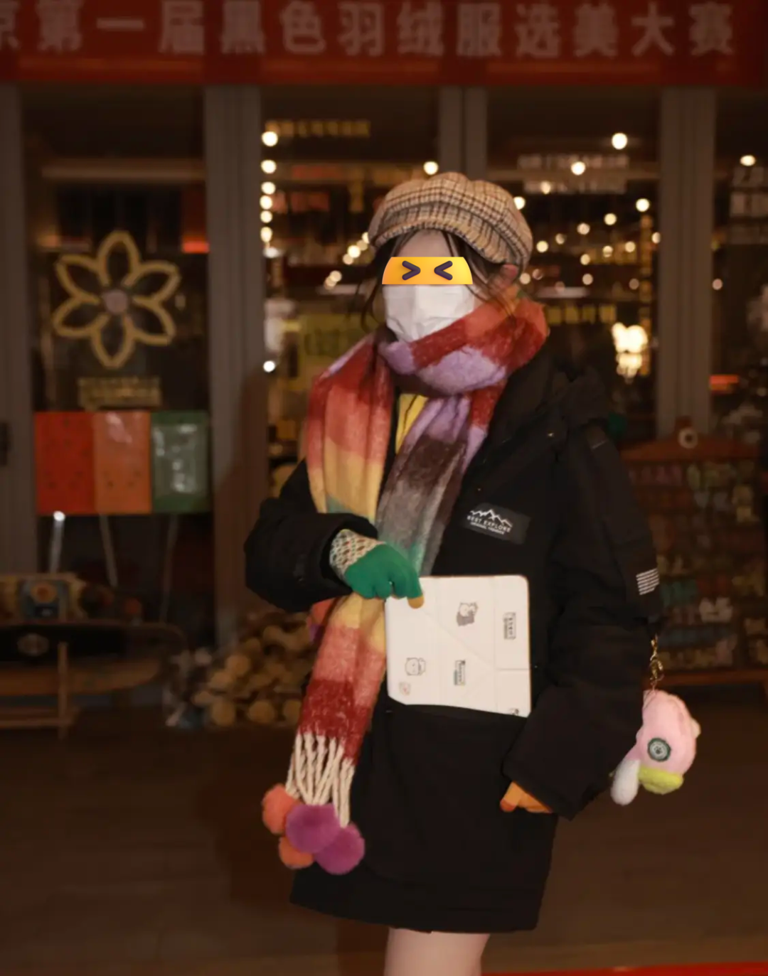 在刚刚扛过零下十几度低温的北京,保暖,则是另一条不可妥协的底线。现场的羽绒服,要么自带金灿灿的隔热层,要么充绒克数高到“里面不穿都不冷”,要么干脆走“无限套娃”路线,羽绒服里跟个黑洞似的疯狂加塞,比如塞一件前任市服冲锋衣,又比如一位“替妻出征”的大哥,直接往老婆的羽绒服里套了一件橙色羽绒服,最里面,又是一件黑色羽绒服。
