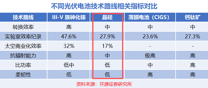 目前能用于太空光伏的技术主要有三种:砷化镓、晶硅、钙钛矿,但它们要想拿到太空入场券,都有各自的硬伤。