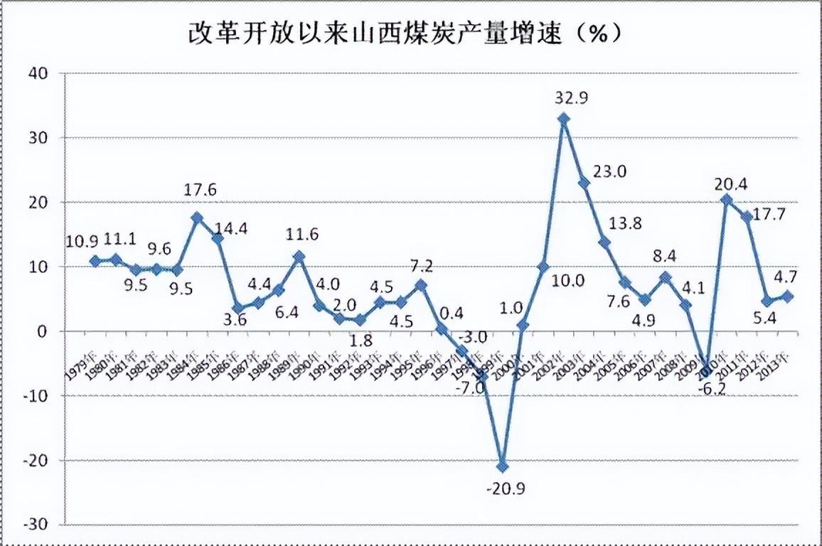 改革开放以来的山西煤炭产量增速