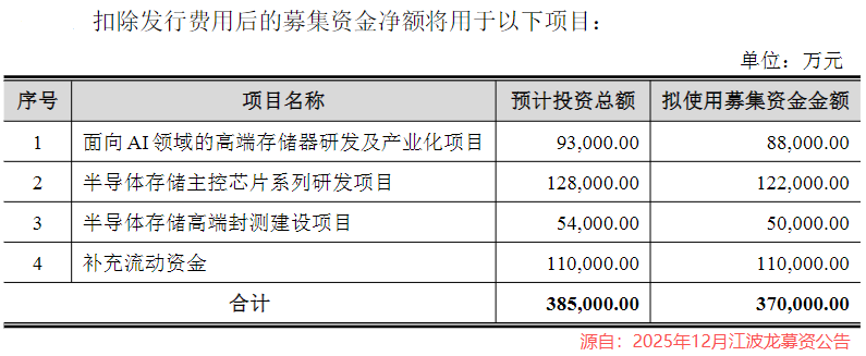 为进一步提升竞争力,江波龙在2025年12月推出37亿元定增计划,用于加码AI高端存储、主控芯片及高端封测。