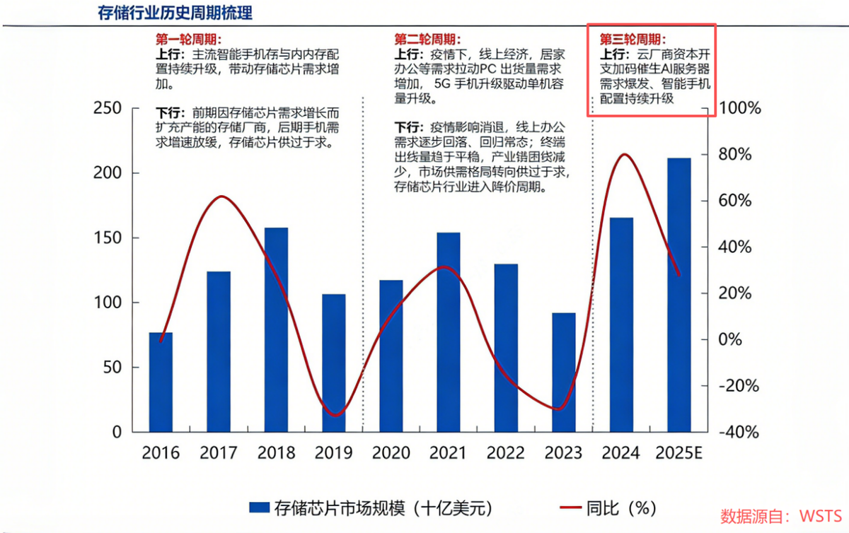 只不过当前存储行业的上行周期与前两轮有着本质区别,其核心驱动力并非消费电子需求复苏,而是云厂商加码AI数据中心建设带来的AI服务器需求高涨。