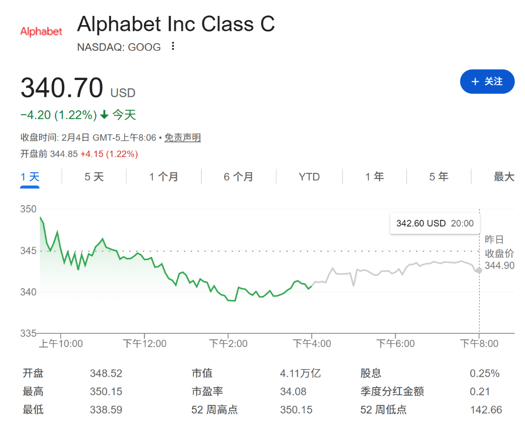 作为“美股七巨头”中去年的领涨者,Alphabet股价的持续上涨已将其推向高位。Ingalls & Snyder高级投资组合策略师Tim Ghriskey指出,由于股价持续强势,即便业绩表现强劲,市场也存在“利好出尽”的获利回吐风险,投资者对推动股价继续上行的业绩门槛预期极高。