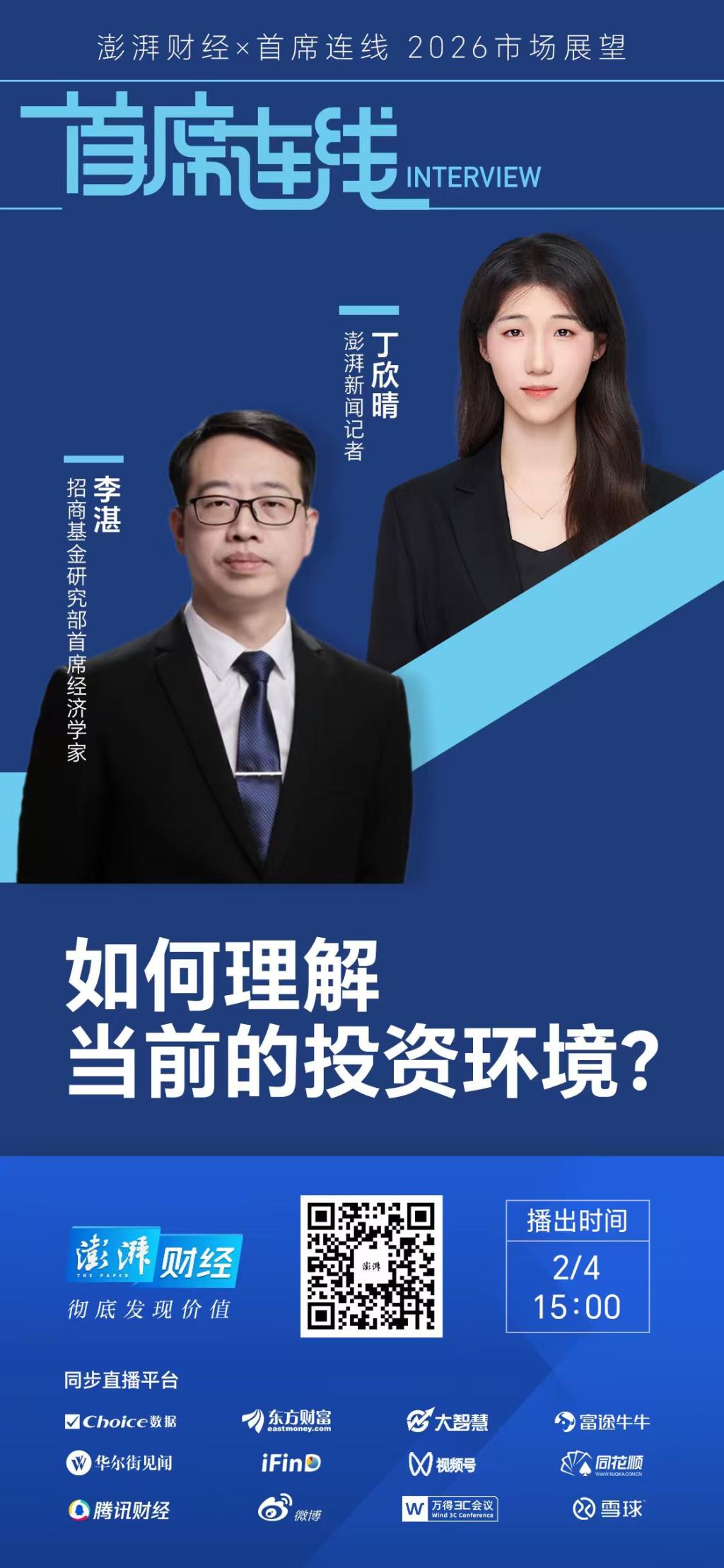 “展望2026年,中国市场有望告别单一估值修复,迈入‘盈利改善+估值抬升’的双重驱动阶段。”2月4日,招商基金研究部首席经济学家李湛做客澎湃新闻“春水向东流——《首席连线》2026年市场展望”专题时表示,相较之下,外需不确定性是最大变数,也最可能成为影响2026年市场的关键变量。