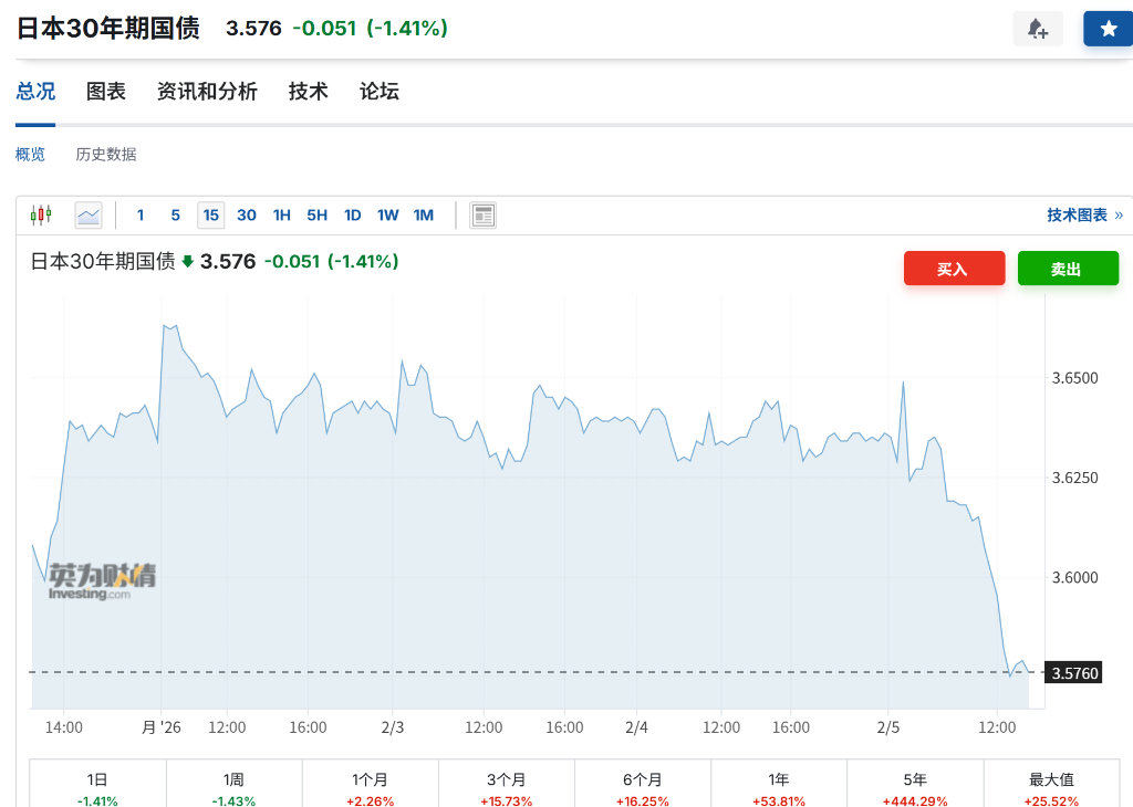 目前的市场背景仍然复杂。日本首相高市早苗此前计划削减食品销售税,曾导致上月收益率飙升至历史高位,并引发了波及全球债券市场的抛售潮。虽然这种压力近期有所缓解,但日本30年期国债收益率目前仍接近其发行以来的最高水平。