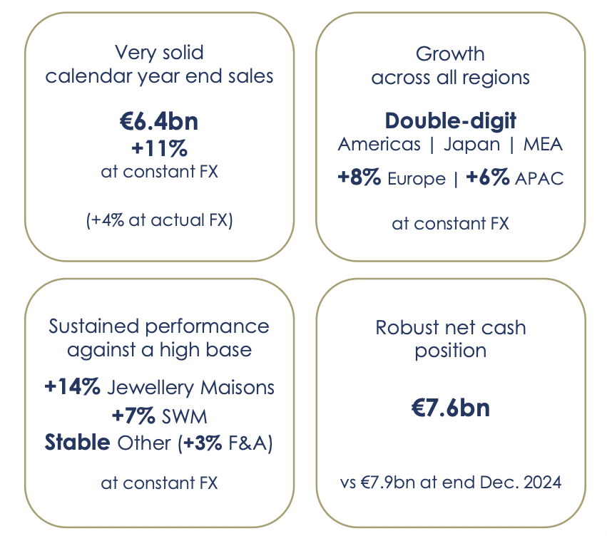 1月15日,知名珠宝品牌卡地亚、梵克雅宝的母公司历峰集团公布了2026财年三季度业绩。