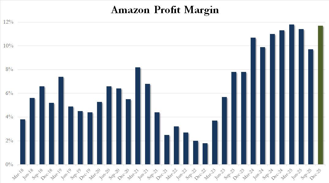 同时,AWS盈利能力并未继续扩张。四季度AWS营业利润124.7亿美元,同比增长17.3%,当季营业利润率35.0%,低于上年同期的36.9%,但高于三季度的34.64%,较分析师预期的35%超预期环比回升。