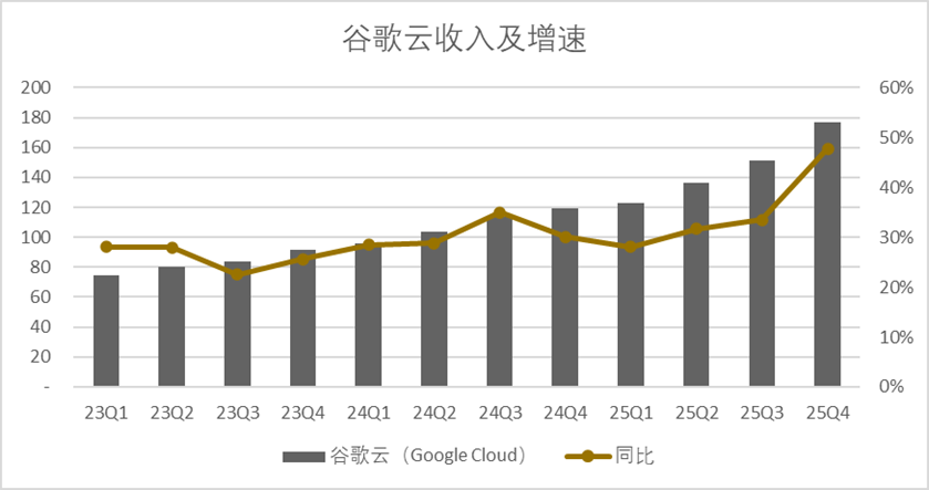 四季度谷歌云延续了优异的表现,单季度营收录得177亿美元,从META下定TPU那一刻起,市场其实对谷歌云的表现预期就已经相对明朗了,只不过年末Agent爆火将谷歌云推上了更高的台阶。