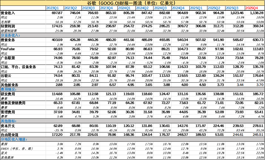 图:谷歌财报汇总,来源:企业财报,锦缎研究院整理,下同