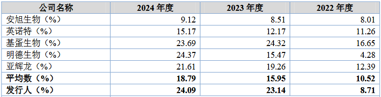 需要注意的是,康华股份销售费用率持续提高,且销售费用中市场推广费持续增长。2022年至2024年,该公司销售费用率分别为8.71%、23.14%、24.09%,其中2023年和2024年均高于可比公司平均数。同期,该公司销售费用中的市场推广费分别为1325.81万元、5247.63万元以及6428.57万元,占销售费用比例分别为10.28%、30.70%以及36.66%。
