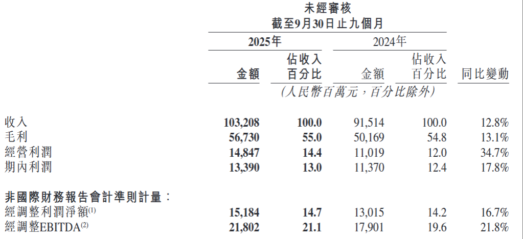 2025年前三季度,快手总营收1032亿元,同比增长12.78%;归属净利润133.9亿元,同比增长17.79%。