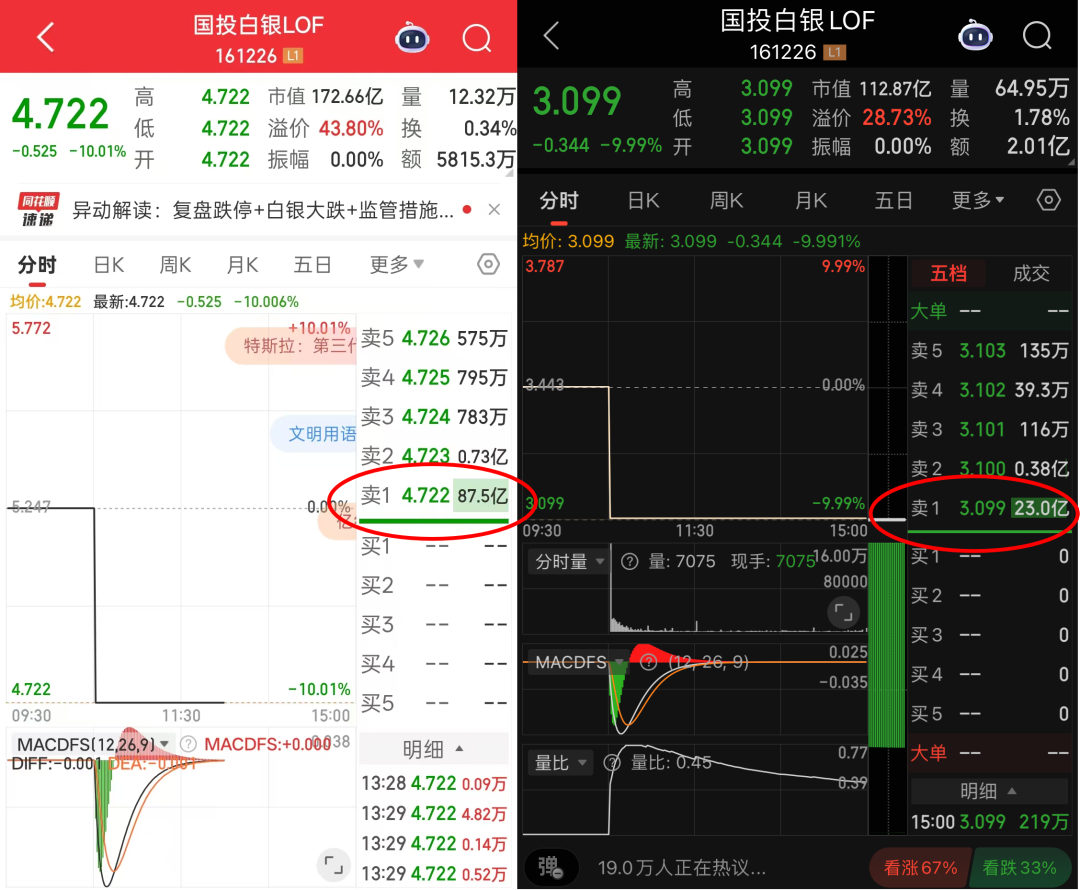 但是,谁能想到,这周 国投白银LOF连续5天封死跌停。