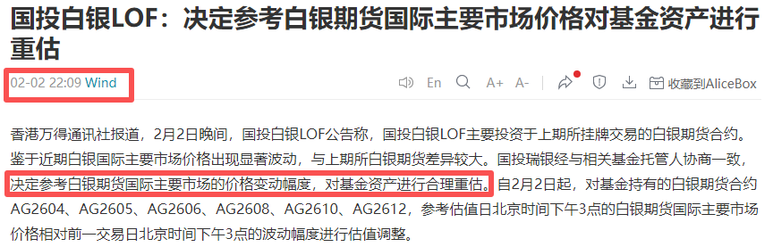 这也 是为何2月2日深夜,国投白银LOF突然发公告要调整估值。