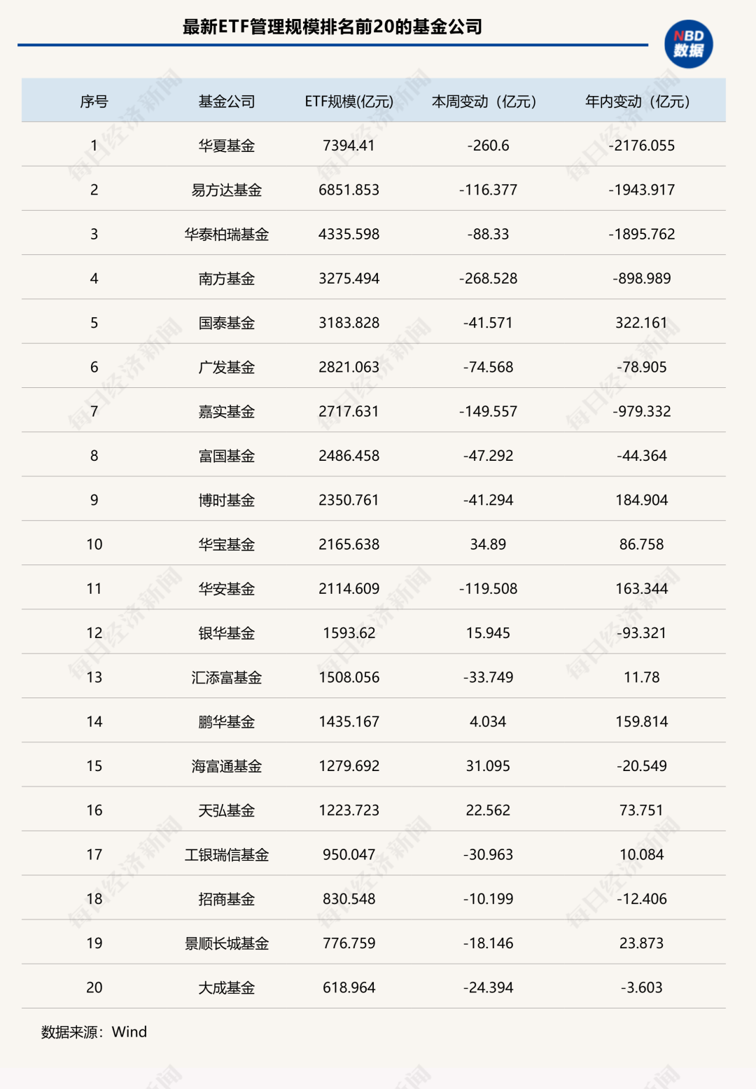 5家机构ETF规模缩水超100亿元,华宝基金逆势挺进TOP10