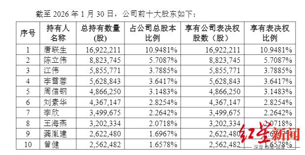 据悉,到期终止前,唐联生及其一致行动人直接及间接持有上市公司的股份合计为5174.08万股,占公司总股本的33.47%,公司实际控制人为唐联生。微成都注意到,唐联生现任公司董事长,江伟任董事、总经理。