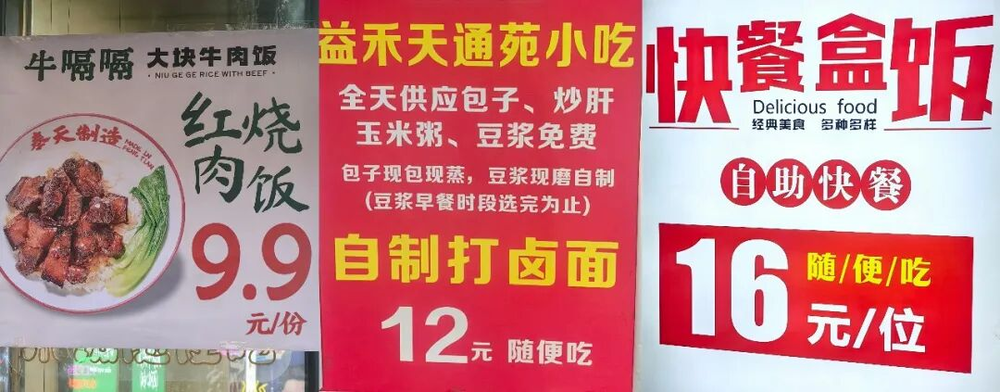 “拼好饭”的模式,说到底是薄利多销,平台聚集需求,提供流量。要做线下的“拼好饭”,我们就要自己找流量。我们用最显眼的红色做门头,直接打上6块钱的价格,自带流量。
