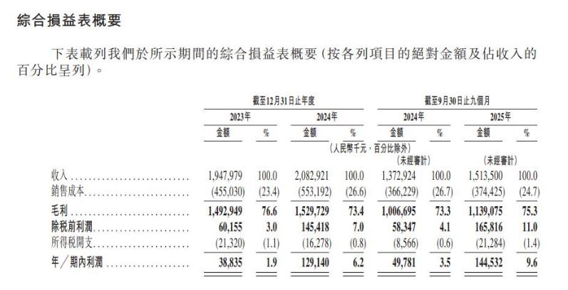 根据HBN 招股书,2023年-2024年,其营收从19.48亿元增长至20.83亿元,2025年1-9月的收入为15.14亿元;同期净利润分别为0.39亿元、1.29亿元和1.45亿元,仅2025年前三季度利润已超过2024年全年,同比增长高达190.3%。