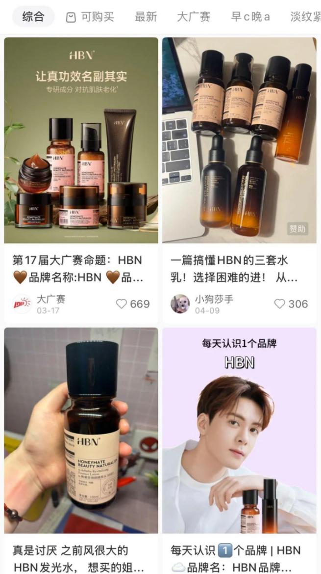 作为最早提出“早C晚A”概念的品牌之一,HBN提出“用数据说话”的品牌主张,成功开拓了功效护肤这一细分赛道,俘获了一群懂成分、重实效的“成分党”。
