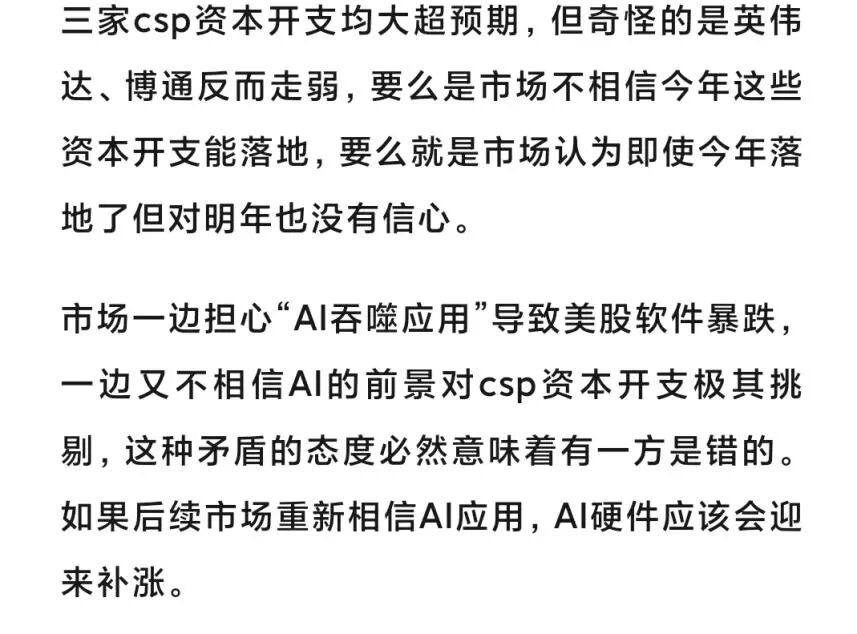上周五的文章有提示北美csp资本开支大超预期,等市场风偏回暖后,AI硬件有望迎来补涨,当晚美股科技股就大涨,英伟达暴涨近8%,这毫无疑问会带动全球AI硬件情绪。