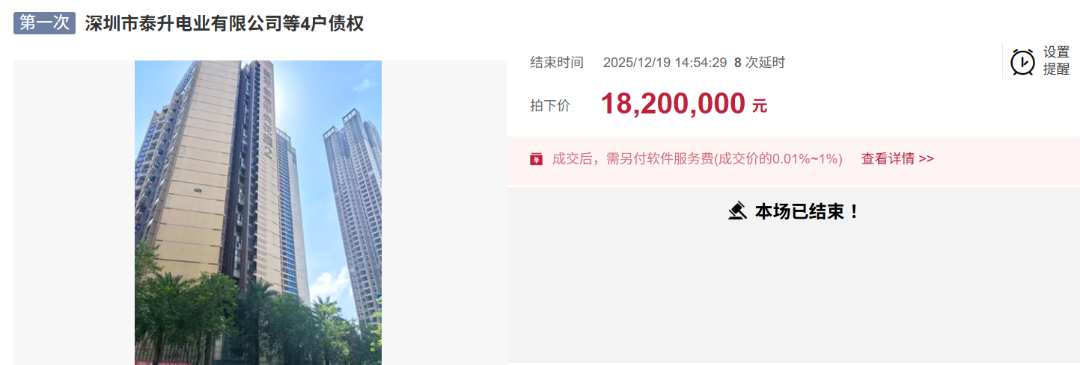 拍卖结果显示,2025年12月19日,秦力环材、大众新能源节能等4户不良债权被买家以1820万元的价格拍下了。