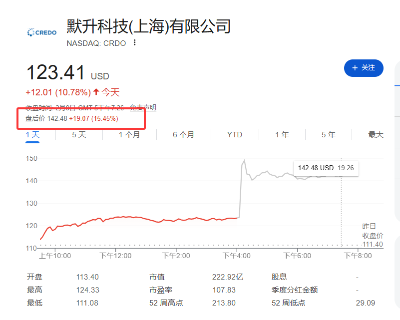 受此消息刺激,Credo股价在周一常规交易时段已收涨10.91%,报收于高位。财报预告发布后,盘后交易时段股价继续狂飙,涨幅一度超过15%。